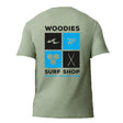 Woodies Tee - Sage - Black & Blue Tiles Logo